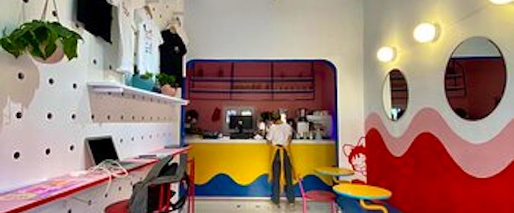 Bambolina significa muñequita en italiano, pero también es el nombre del personaje principal de esta cafetería. Su diseño muestra un dibujo infantil que, de hecho, tiene la intención de remontarnos a la infancia para reconectar con nuestro niño interior y explorar nuestra creatividad sin prejuicios, como lo hubiéramos hecho de niños.