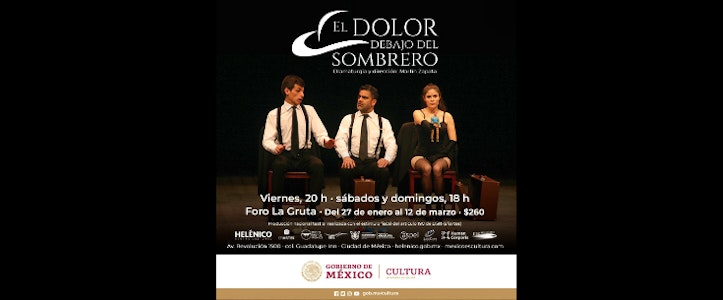 Se reitera que El dolor debajo del sombrero vivirá una breve temporada en el Foro La Gruta, del 27 de enero al 12 de marzo, los viernes a las 20:00 horas, así como los sábados y domingos a las 18:00 horas. El costo del boleto es de $260. Las entradas se pueden adquirir en las taquillas del Centro Cultural Helénico, ubicado en avenida Revolución 1500, o a través de la página: helenico.gob.mx.
